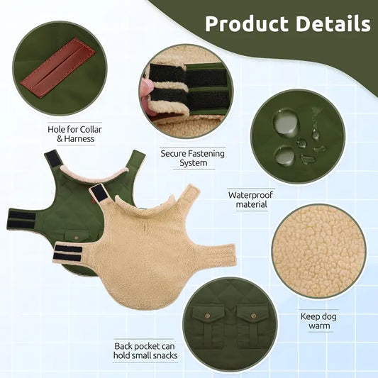 Luxury Recycled Polyester Waterproof Dog Coat - Army Green